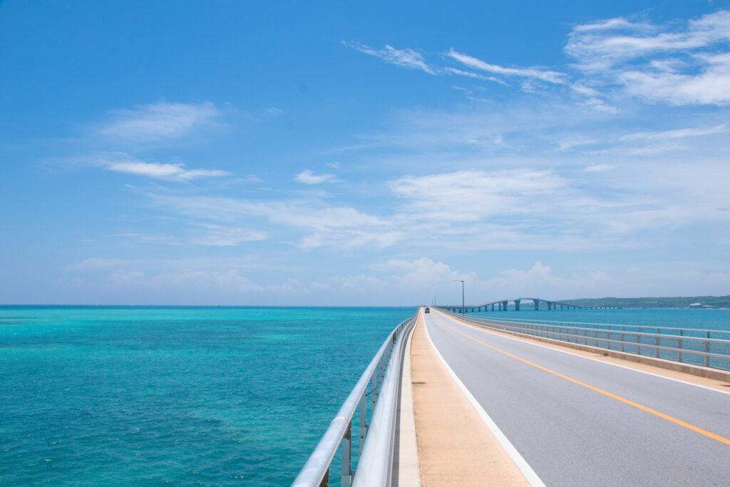 伊良部大橋の絶景を駆け抜ける 開通11周年を迎える伊良部大橋。バイクでの下見はもちろん、ドライブで渡る青い海は、疲れを吹き飛ばすほどの美しさです。